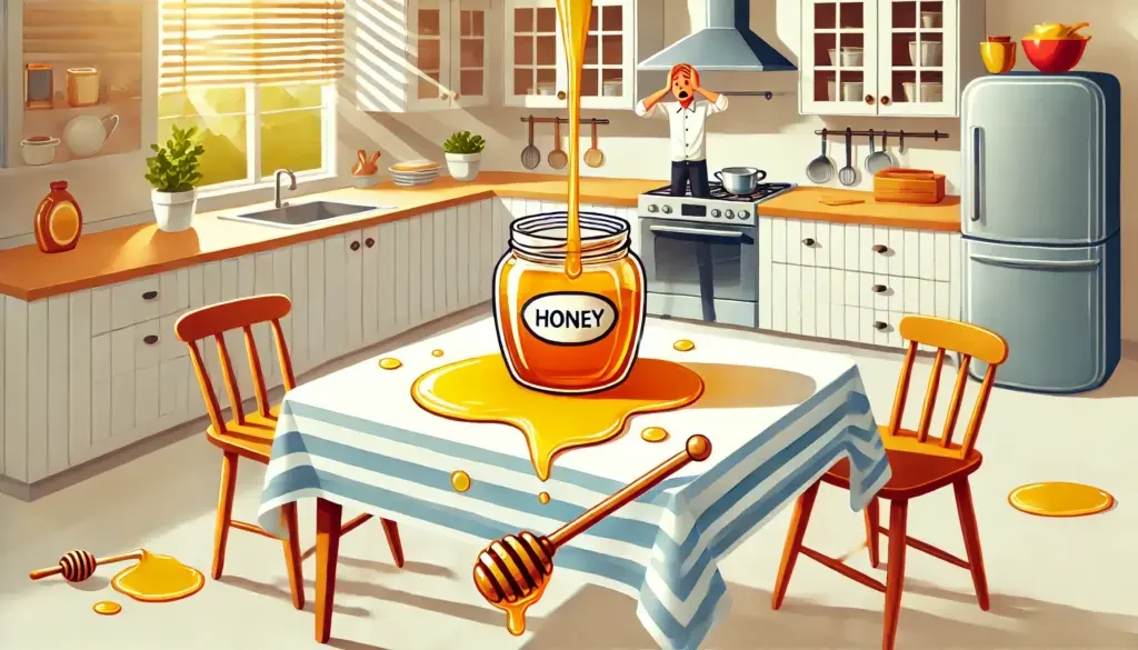 - Sei vorsichtig beim Öffnen von Honiggläsern, um Tropfen und Verschütten zu vermeiden.
