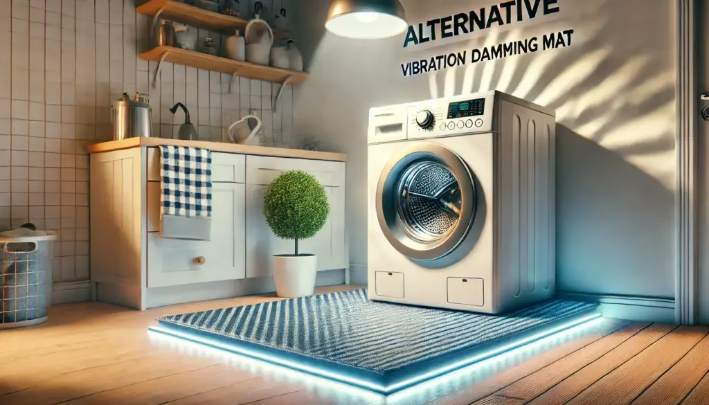 Die Alternative zu den Unterlegdämpfern ist die komplette Dämpfungsmatte. Diese Matte wird komplett unter die Maschine gelegt und sorgt so für einen festeren Stand, als ohne Matte. Der Nachteil dieser Matten ist jedoch, dass hier die Waschmaschinen weiterhin leicht wandern und im schlimmsten Fall (zum Beispiel bei leichter Unwucht in der Beladung) können die Geräte von der Gummimatte rutschen und Schaden nehmen. Für viele sind diese Matten auch optisch nicht gern gesehen, da sie immer sichtbar und schwarz sind. Problematisch wird es mit dieser Art der Dämpfung, wenn die Maschine Wasser verliert (z.B. bei dem Säubern des Fusselsiebs) und dies dann unter die Matte läuft. Eine Reinigung ist dann nur schwer und mit großem Aufwand möglich.
