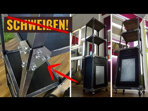 Super cooles Stahlregal auf Rollen. Kann man mit der Anleitung leicht nachbauen und es sind noch nicht mal Schweißverbindungn nötig.