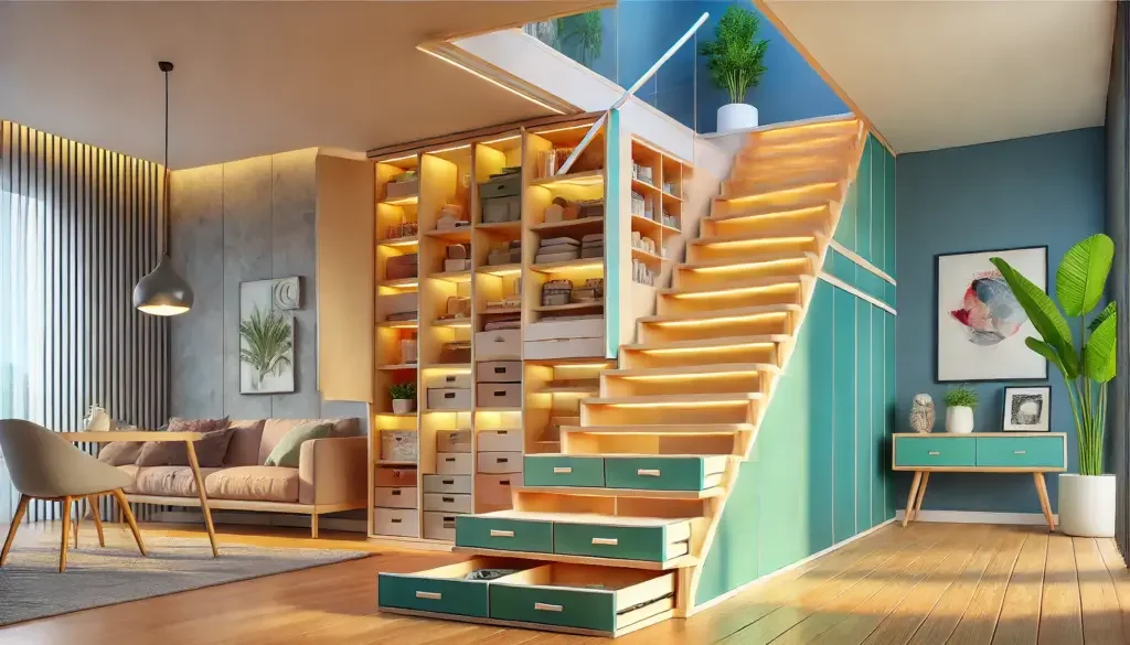 Zweck: Treppe und Stauraum in einem